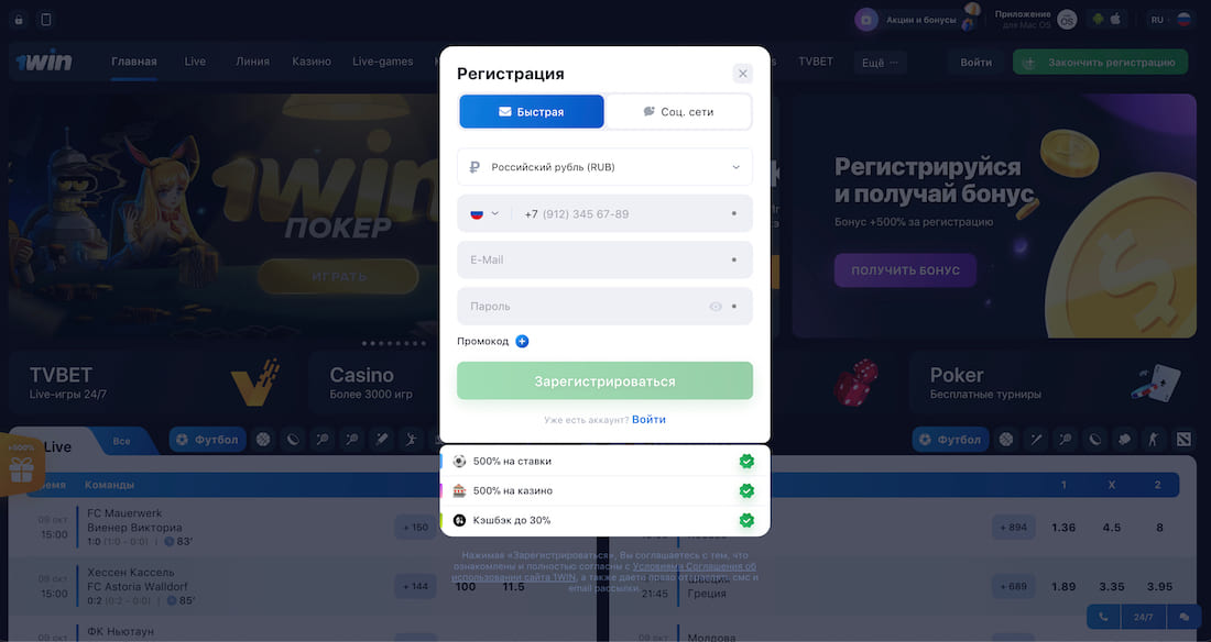 Чтобы войти на сайт и начать играть, пользователь должен зарегистрироваться. В букмекерской конторе вы сможете зарегистрироваться разными способами: через почту, по номеру телефона или через социальные сети. Для регистрации нужно вводить только достоверные данные. Как только вы их укажите и подтвердите их, вы сможете осуществить вход на сайт.