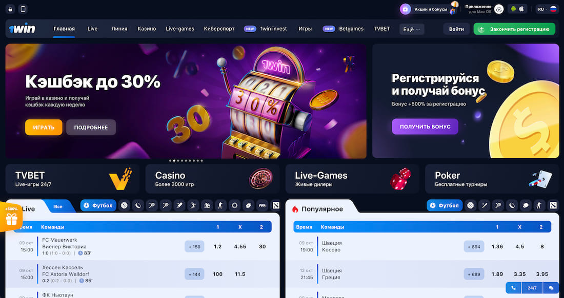 Букмекерская контора 1 вин имеет безупречную репутацию. Здесь сосредоточены разные игры и игровые автоматы, которые подарят истинное удовольствие вам. Также вы сможете заработать на этом деньги. Контора прославилась и из-за того, что постоянно радует клиентов приятными бонусами, акциями для всех клиентов. Как только вы зарегистрируетесь в 1 вин, вы тут же получите свой первый бонус. Он называется приветственным.